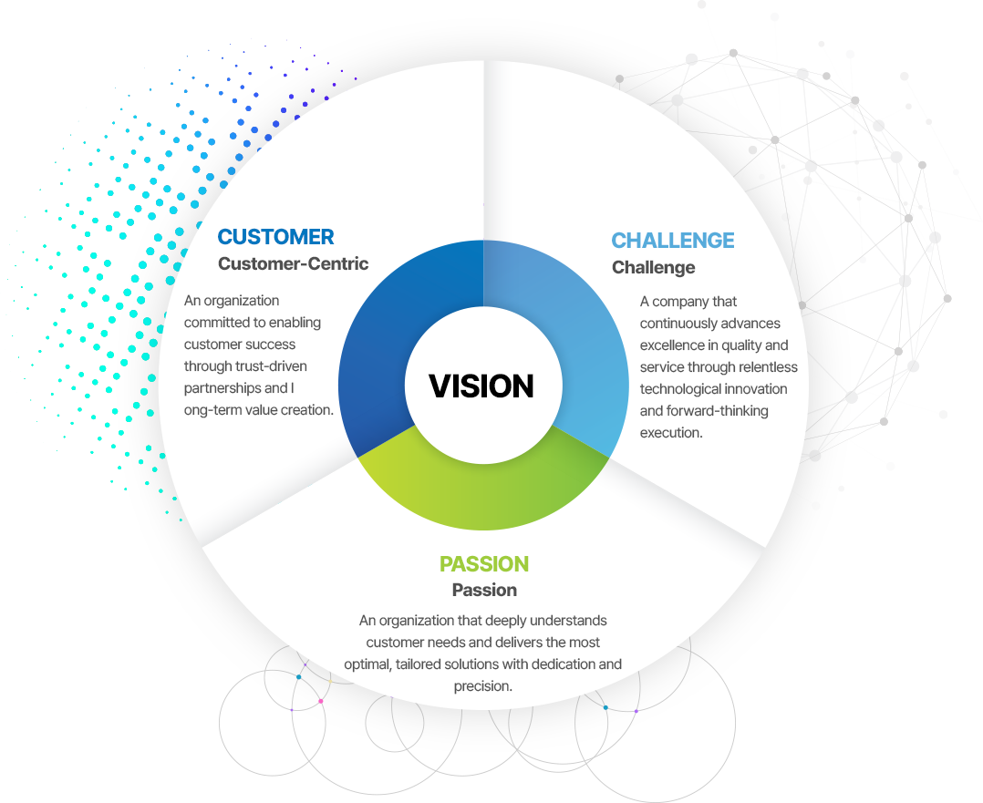 We are committed to becoming a company that enables customer success, continuously drives innovation and transformation, and fulfills its social responsibilities with integrity and accountability.